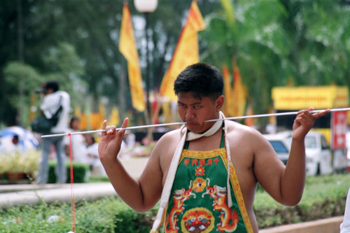 The body piercing ceremonies of the Phuket Vegetarian festival provide some of the most spectacular – and gruesome – spectacles within Thai culture